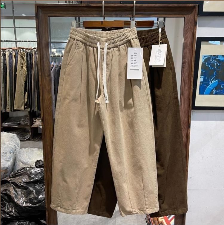 日潮雅痞風寬鬆直筒哈倫褲男高街潮流時尚闊腳褲潮男休閒長褲