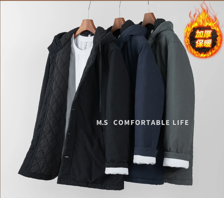 2025冬季新款棉麻加厚保暖休閒寬鬆連帽棉服外套