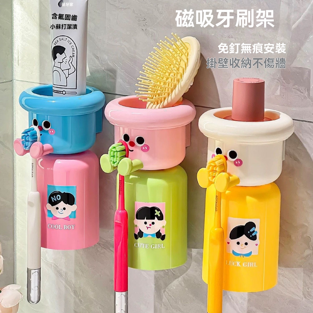 11分鐘前多巴胺磁吸牙刷杯架電動牙刷架大號帶漱口杯磁吸免打孔家用浴室 - 【限時秒殺】三組入 NT$ 1298