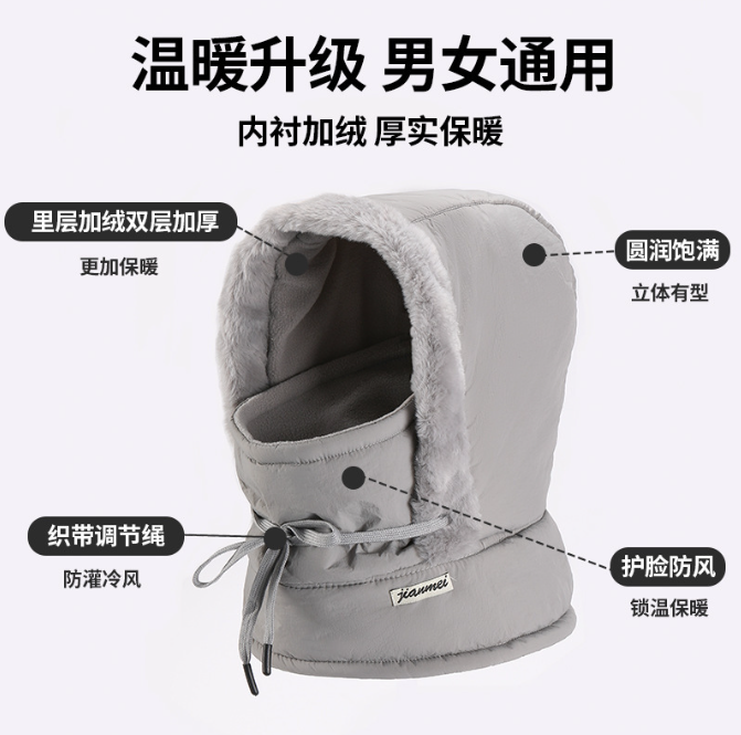 12分鐘前冬季男女保暖雷鋒帽加絨加厚防寒面罩圍脖一體戶外防風騎行包頭帽 - 【新品體驗】3入组-NT$988